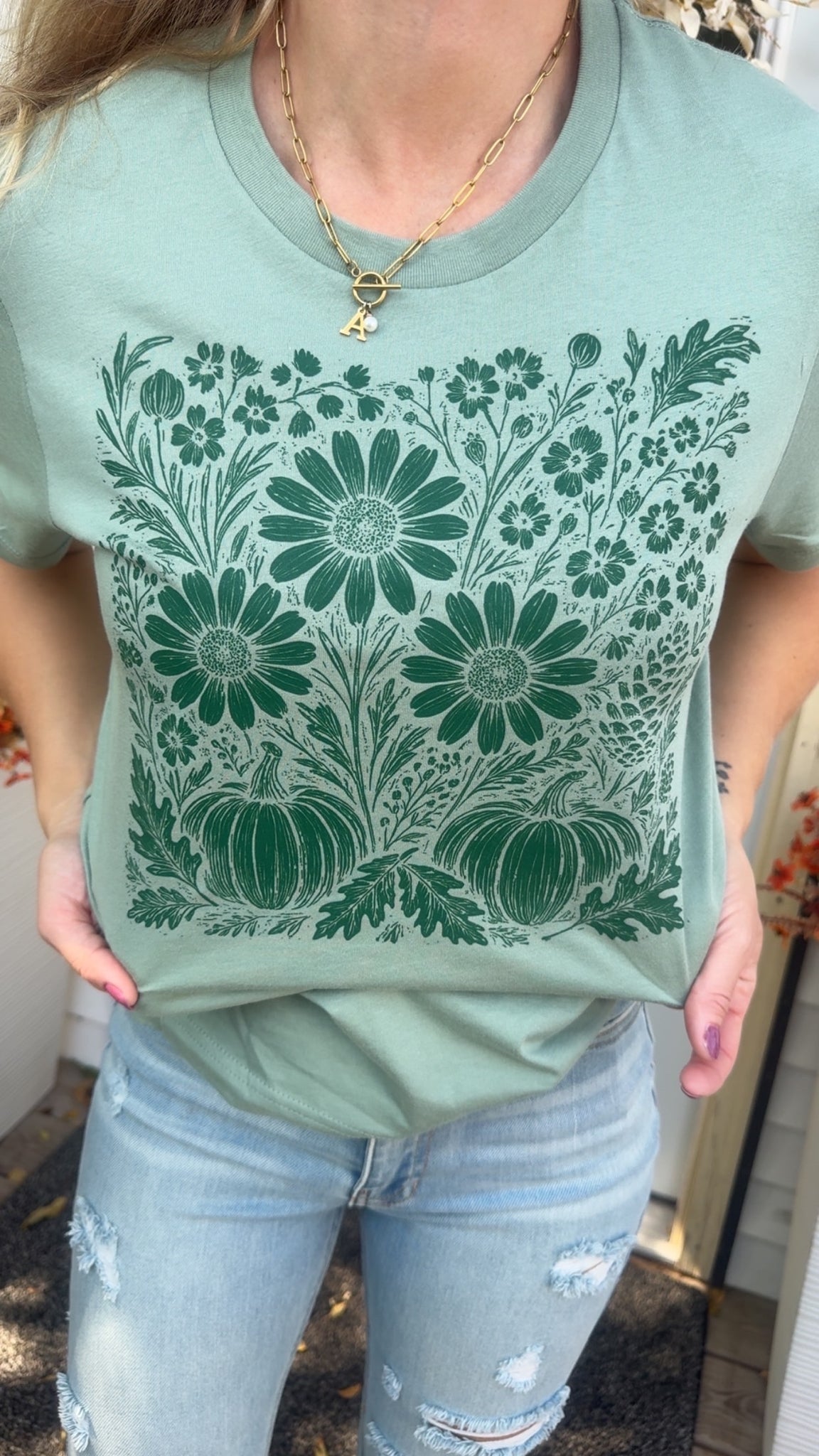Fall Sunflowers and Pumpkins in forest green print