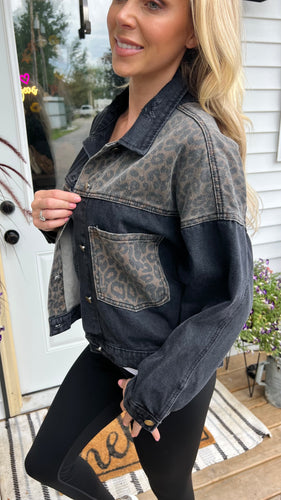 • Black Denim Leopard Jacket
